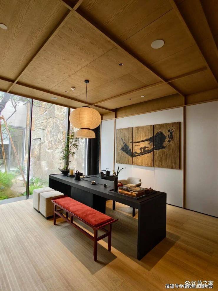 单扇就重达六七百斤的铜门,几乎是无声地滑开;以编织手法呈现的石材半透墙,带着几分东方含蓄;在门侧恭候你归家的,是百年老桩粉紫薇斜斜的树梢。