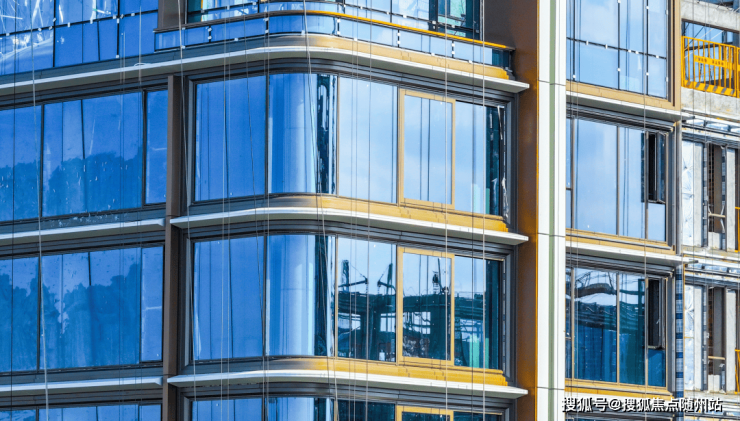 立面工艺:采用3.0窄边金色油画框设计,搭配浅灰色落地玻璃幕墙与白金铝板流体线条,呈现“无界镜面”效果,兼顾遮阳功能与光影艺术。