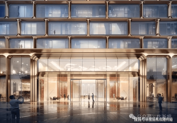 细节工艺:预制无缝弯弧铝板、玫瑰金外立面,提升建筑精致度。