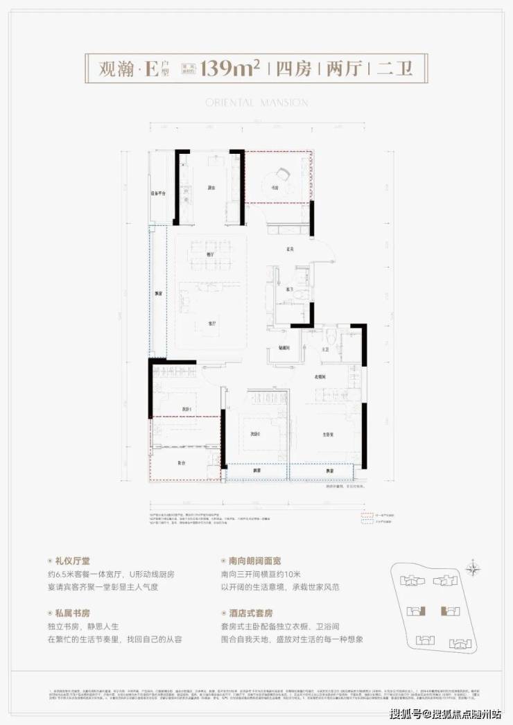 约103㎡三房面向首置家庭,约120-126㎡四房契合首改需求,约139㎡大户型专为二胎家庭或三代同堂设计。南向大面积阳台、U型厨房、套房式主卧等细节,均体现对现代生活场景的深度考量。