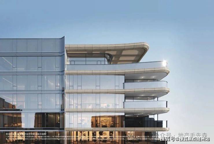 南北两侧立面均是超高的窗墙比,并配以大面落地玻璃。层间线条则是铝材和石材的点缀结合,使用了大量的曲面弧形石材。用的还是跟合肥招商玺同款的「双曲倒弧工艺」,成本非常高。
