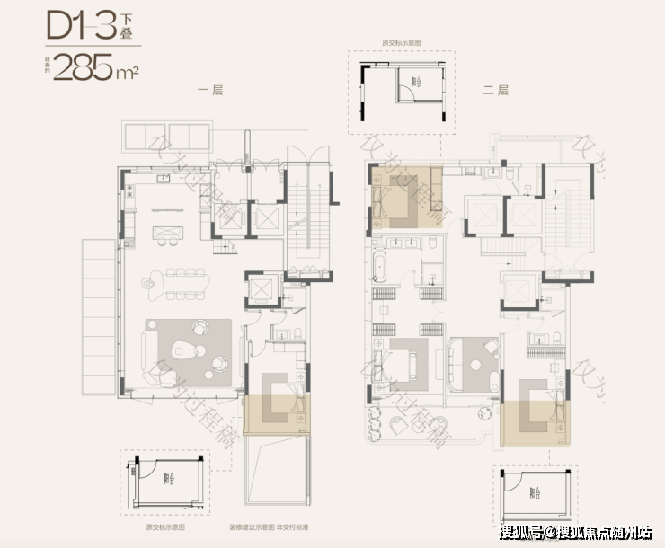 (天澜传序府建面约285方下叠户型效果图)