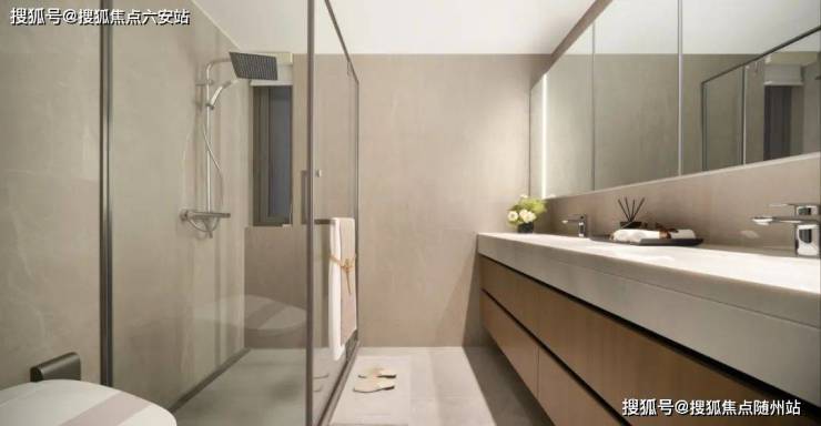 主次卫均配松下智能马桶,实现“智能马桶平权”。卫生间还有隐藏式暖风机、唯宝台盆、汉斯格雅龙头与花洒,件件是高端改善盘的常客。
