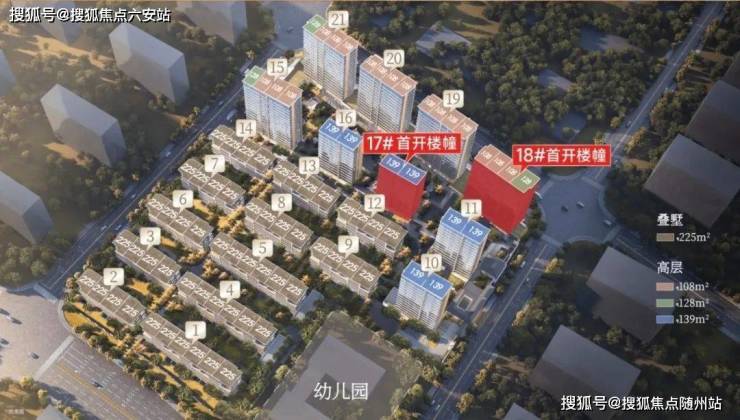 建面约108-139㎡低密高层:全新迭代升级:享低密墅级住区,视野景观、园区配套、居住体验更胜一筹,近100%使用空间;建面约225㎡类独栋式叠墅:叠墅创新之作:外立面美国白金石材+铝板,以独栋式归家动线设计,兑现独门独院、私家花园、私梯入户三重体系,上中下叠均享专属花园、6.6米地下室、私家车库,实现户户“有天有地”的墅居生活,使用率远超市场同类产品;