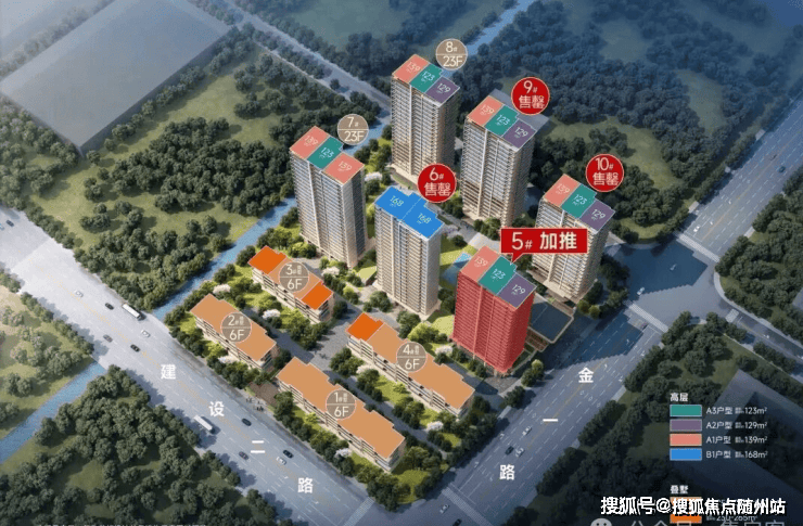 项目位于建设二路与金一路的交会处,依托方正的地形,规划了6幢高层+4幢叠排,其中高层住宅仅356套。户型方面,本次首开的2幢高层(9、10号楼),主推建面约123㎡的中间套,以及建面约129㎡、139㎡的边套,均为四房两厅两卫全明格局。