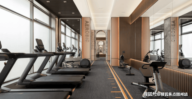 潮语臻境府的北区六幢高层,架空层大部分都做了主题空间,有儿童游乐园,有健身房,不止跑步机、举铁器械,还放了普拉提床。