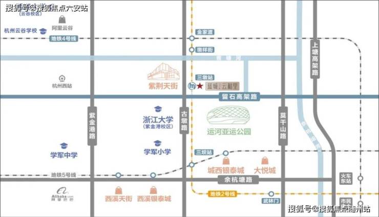 项目地址:西湖区古墩路,位于地铁2号线三墩站D口上盖,交通便利