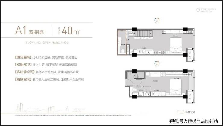 •兴合·望江中心,于寸土寸金的钱江新城,匠心打造建面约40-70㎡双钥匙/LOFT产品,以4.75m朗阔层高,上下双享创变空间,低总价等优势,炼就钱江新城塔尖资产。