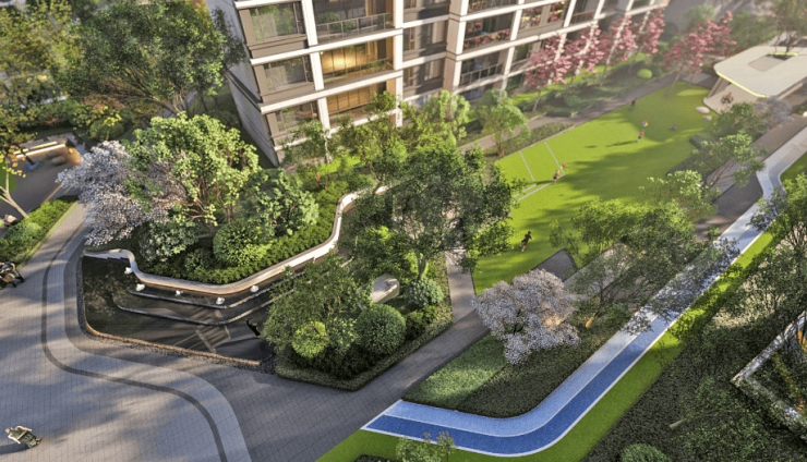 兼顾采光、视野与私密,住区内最大楼间距规划约达72m,充分保证每一户的采光与视野 。匠造活力共享脉,穿联起雅致生活场。