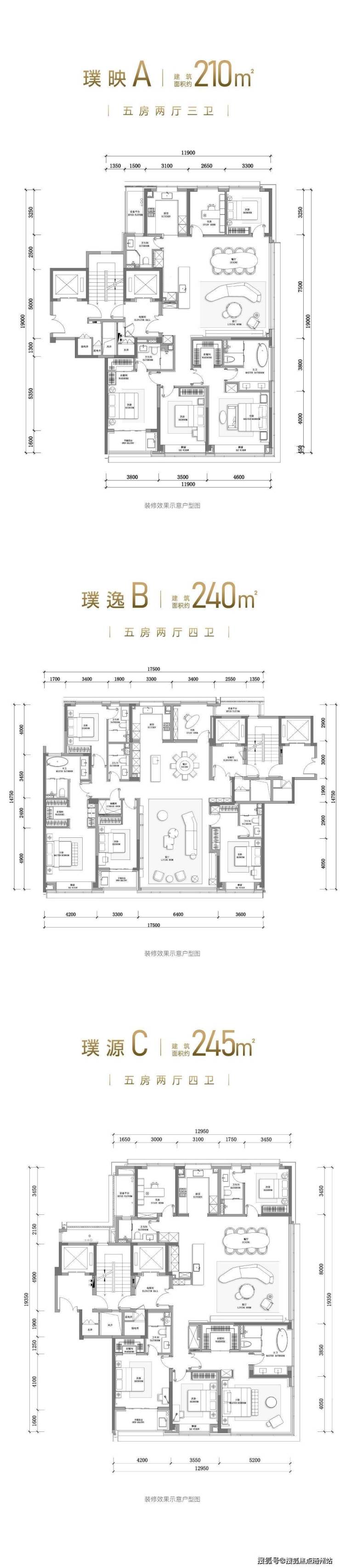 安璞的精装修标准堪称顶配。210、240、245㎡户型由MDO设计室内精装;280㎡户型则由CCD设计。