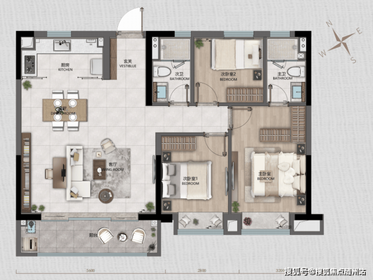 而动静分离、主卧带独卫的设计,也很好保证了主人的隐私。