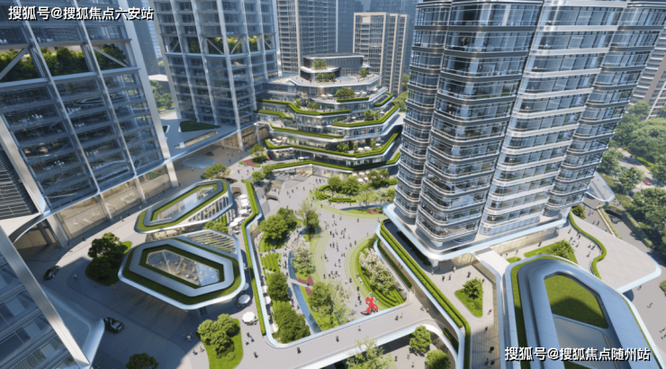 打造地面园林、空中露台、屋顶花园相结合的多层次立体绿化,步移景异。