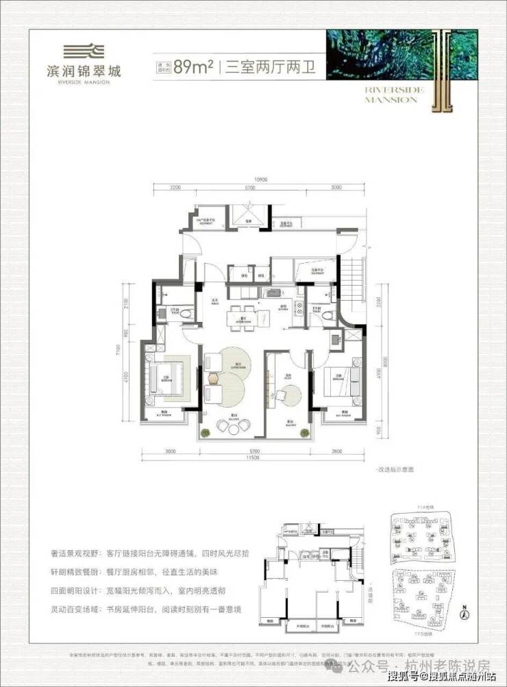 市场爆款建筑面积约89m²神户型,四开间朝南、约11.5米南向面宽、约18.5m²豪华主卧,三室两厅两卫格局,91%高得房率,舒适度堪比100方空间。