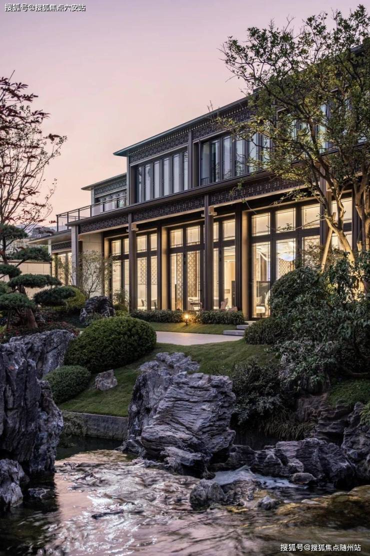 滨江溪映听庐的设计理念是“现代中式”,将传统的中式元素与现代审美相结合,打造出既有传统韵味又不失现代感的建筑风格。项目建筑采用坡屋顶、檐口和屋脊等经典中式元素,同时融入现代通透大玻璃立面设计,既体现了东方的传统韵味,又彰显了国际化的审美格调。此外,项目还注重细节处理,如精致的门窗、雕花栏杆等,都体现了设计师对中式文化的深刻理解和独特诠释。