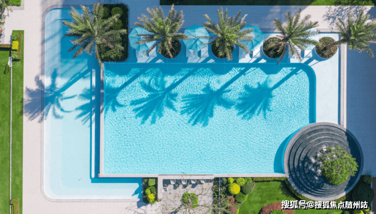 一汪长方形泳池,犹如湛蓝的宝石镶嵌在地面,五株棕榈树摇曳生姿,在泳池里倒影出了五个精巧的扇面,水面在阳光的照射下呈现鱼鳞纹,有一种三亚度假的既视感。售楼热线:☎ 400 832 8823「售楼处」☎〢🔻已认证〢◆🔻