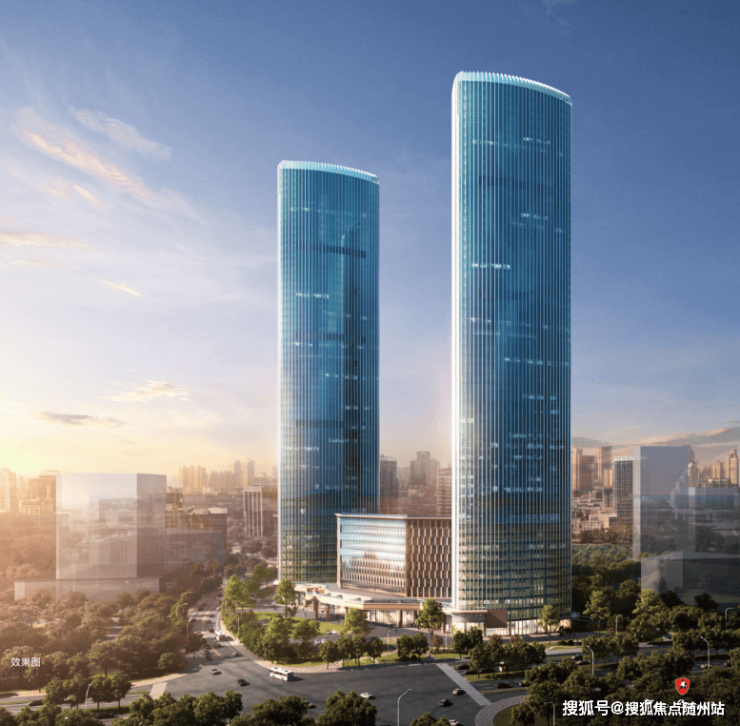 建筑规划:2 栋约 250 米双塔(T1 写字楼、T2 行政公寓)+ 12 层托尼洛・兰博基尼酒店裙楼