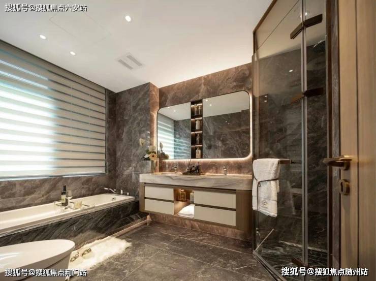 室内空间排布也充分结合居住理念,一楼独立套房,方便家里长辈起居;二楼三卧室全朝南,开间都超过10米,全景落地玻璃,风景如画。堪比星级酒店总统套房的主卧,带独立卫浴间,配上双台盆+大浴缸,以及走入式衣帽间,既是太太的更衣室,也是先生的名表收纳室。