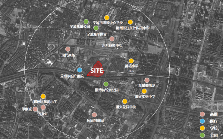 项目位于鄞州区江东核心板块仇毕片区,靠近宁波东枢纽,是宁波重要的门户区域,位处三大豪宅板块交汇处、是《鄞州2049城市发展战略》中重点规划的鄞州中提升战略的核心区域。