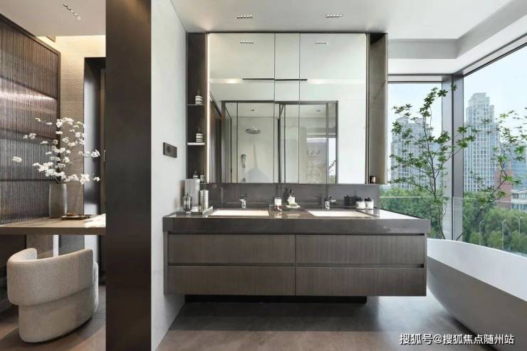 在卫生间,台盆柜与镜柜堪称收纳担当。台盆柜内部空间充足,洗漱用品、清洁用具都能妥善收纳。美妆级专业镜柜,设有开放收纳格,方便随手拿取常用物品;美妆灯带,让妆容更精致;内置插座可随时为电动牙刷等小电器充电。