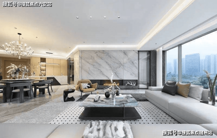 它围绕中心一个奢阔的静谧花园,以城市森屿度假风为灵感进行打造,层层递进又充满秩序感,尺度和格局上,都大开大阖,充分的实现了户户瞰景,移步换景。