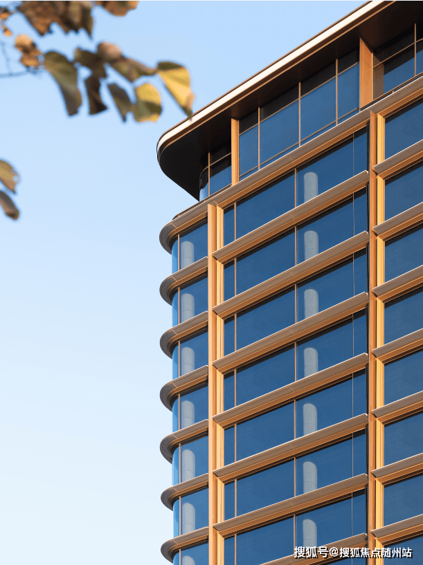形态美学:立面以“多层次斜切面+圆弧元素”为语言,将宝格丽扇形纹样嵌入建筑,形成三维立体的视觉张力。米白色铝板与金色系铝板(暗金、香槟金、浅金)的碰撞,搭配灰色LOW-E玻璃,冷暖交织中透出“金镶玉”的奢华质感。