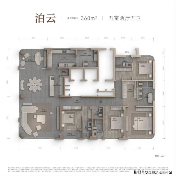 360㎡:转角副门设计,让湖景资源最大化;主卫采用“双台盆+独立浴缸”配置,尺度堪比五星酒店。