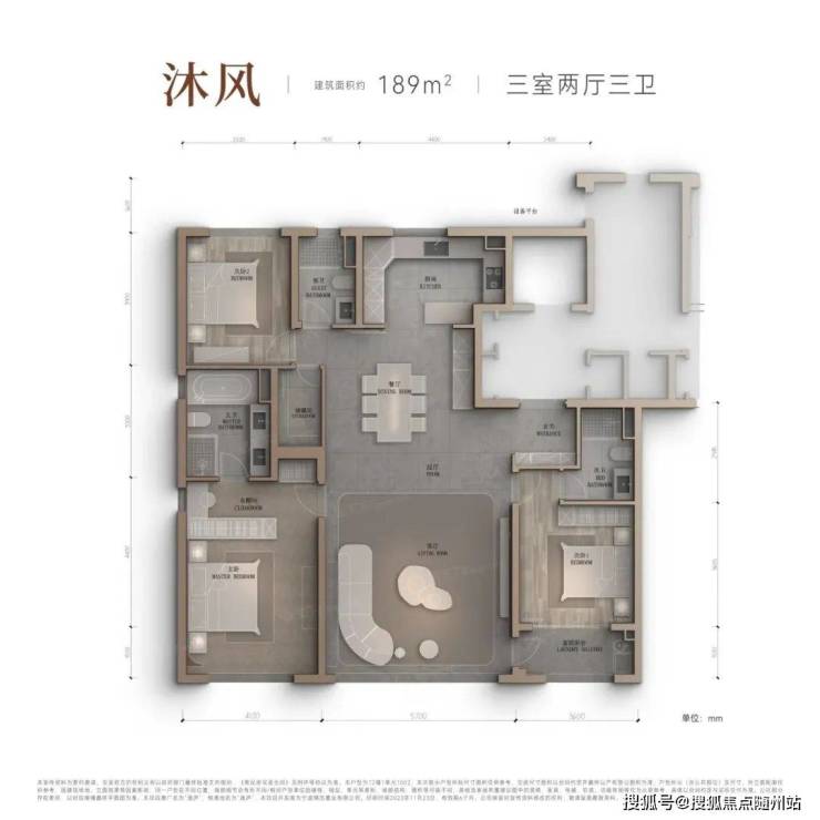 189㎡:LDBK一体化设计,南向5.9米面宽,落地窗将湖景“框”成室内背景;