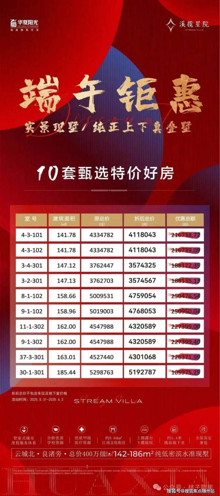 溪揽星院:实景现墅/纯正上下真叠墅、10套甄选特价好房、总价400万级、142-186m²纯低密滨水准现墅