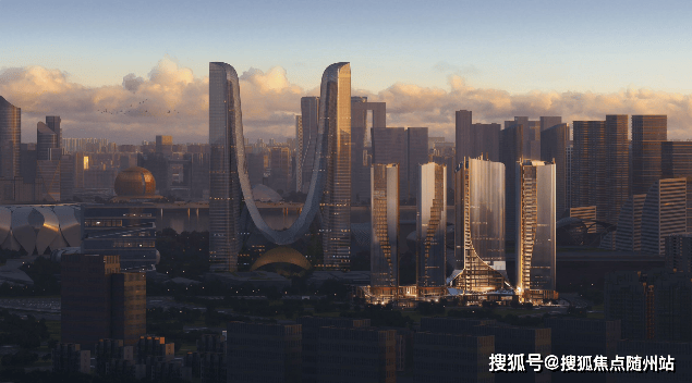 总体量26万方,4幢塔楼及2个散落的艺术商业IT Mall,与杭州之门、莲花碗形成杭州奥体地标三件套!