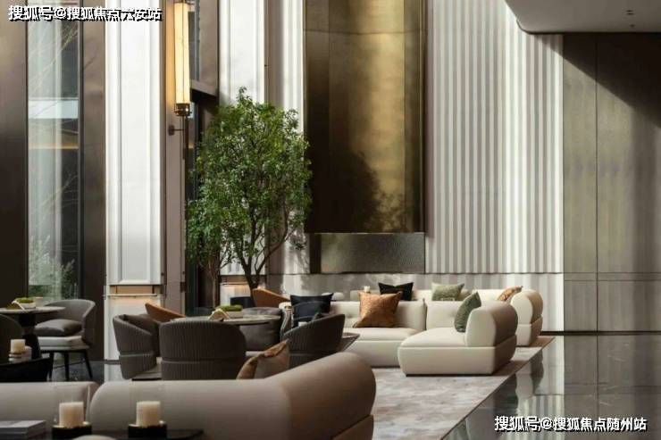 金色铝板挑檐、四面全干挂铝板+三玻两腔玻璃幕墙,搭配仿金丝楠木线条,打造现代与古典交融的“宋风立面”;主入口采用“普拉达绿”奢石与百年罗汉松造景,彰显归家仪式感。