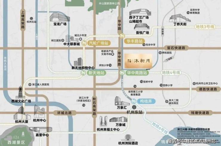 地铁:距离4、6号线双地铁交汇华中南路站(4号线已通车,6号线规划中)仅约300米,妥妥地铁盘,1站新天地商圈、5站杭州东、7站武林广场、9站钱江新城