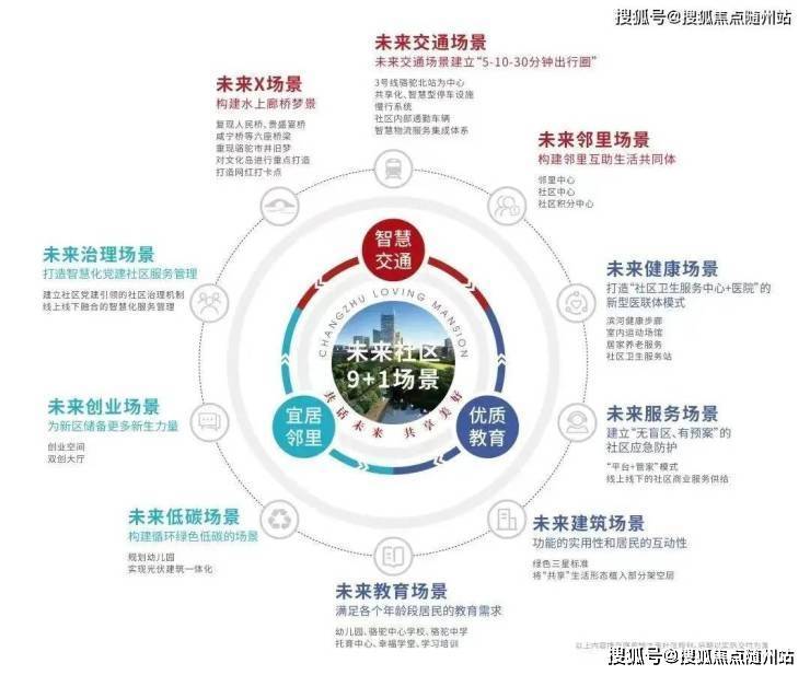 宁波招商璀璨天鑫选址康桥南路和李冯路交叉口,靠近宁波老城及江北区城市核心区,提供交通、办公、文教、居住、商业、休闲六大城市业态,完善生活配套需求,打造有归属感、舒适感和未来感的新型城市功能单元。一心三化九场景——未来社区的顶层设计。