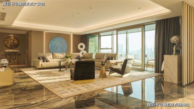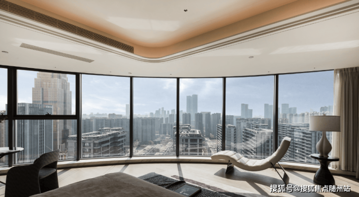 270°环幕视野:项目主力户型为440-450㎡精装大平层,采用罕见的270°流线形格局。这一设计突破传统矩形户型局限,赋予每个空间超宽屏采光面,窗墙比高达40%,让阳光充分倾泻入室内。通过全三层中空low-e落地玻璃包裹,每个空间都格外通透敞亮。