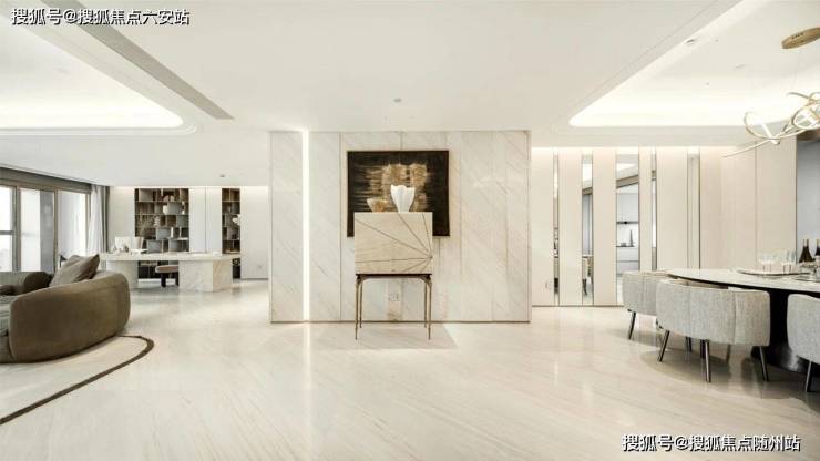 约450㎡“香奈儿”西边套,将原本多见于餐桌和墙面的白金沙奢石,漫铺于双厅地面之上。浅淡得宜的洁白,温润如玉的蜜色,将空间衬得时髦优雅。能眺望钱江两岸的梦幻天际线,“宇宙中心”奥体尽收眼底,也能俯瞰城市霓虹,车水马龙就在脚下。整个中心的璀璨世界定格在落地窗前,像一张巨幅明信片。