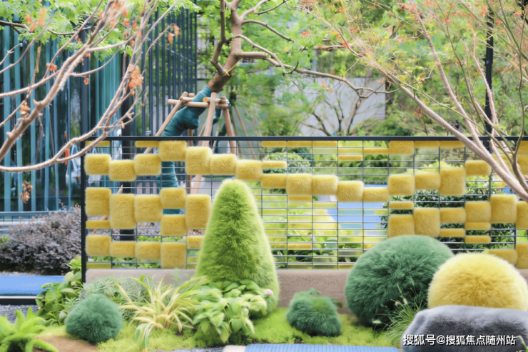 外立面上空中绿篱如织如绒,随季节悄然变色,