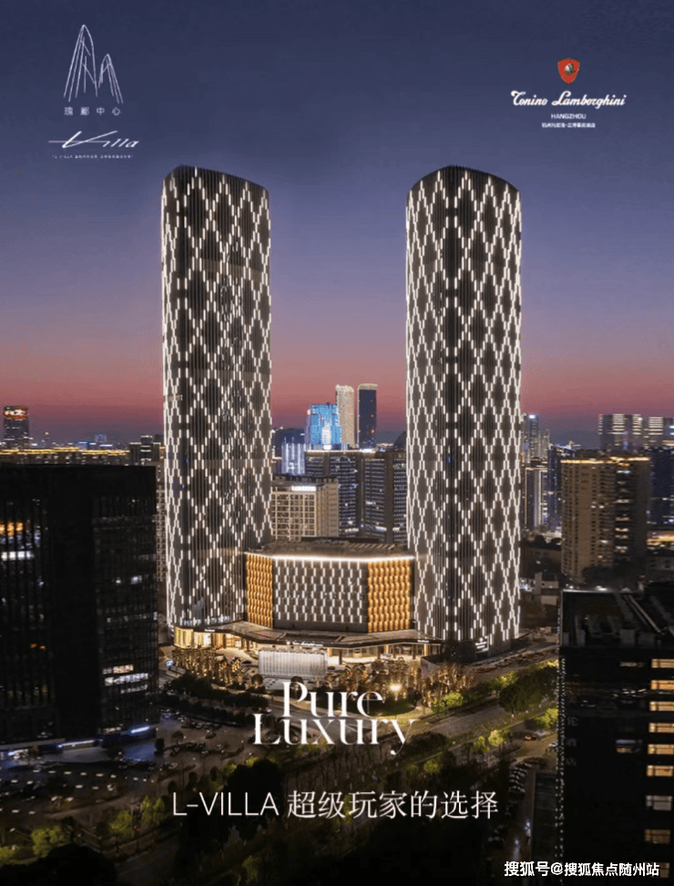 项目总占地面积 20503 平方米,总建筑面积 311334 平方米,由两座 250 米塔楼和 12 层裙楼组成。其中,T1 塔楼为 5A 甲级写字楼,T2 塔楼为兰博基尼行政公寓,裙楼则引入杭州第二家托尼洛・兰博基尼 Veneno 酒店。