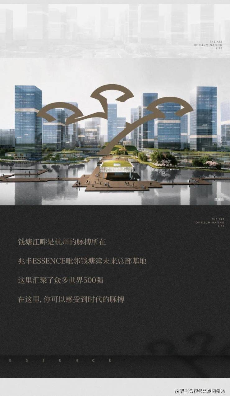 兆丰ESSENCE是杭州奥体CBD核心区的封面级商业大平层项目,由国际建筑事务所Aedas操刀设计,定位为"塔尖艺术奢域"。