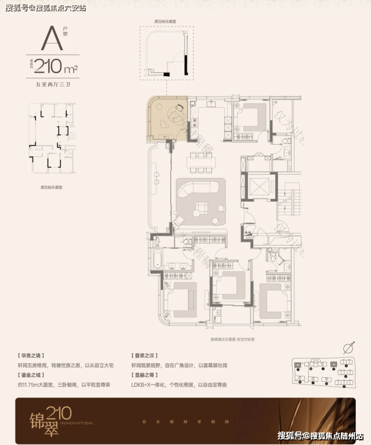 以“奢材之盛和品位之贵”为诉求,同频全球重奢风尚,荟萃奢石,配合大师的笔触与审美,再叙滨江华贵大宅。【高层210】以现代轻奢为笔触,臻选达芬奇、皇家白玉等天然奢石,造境华贵