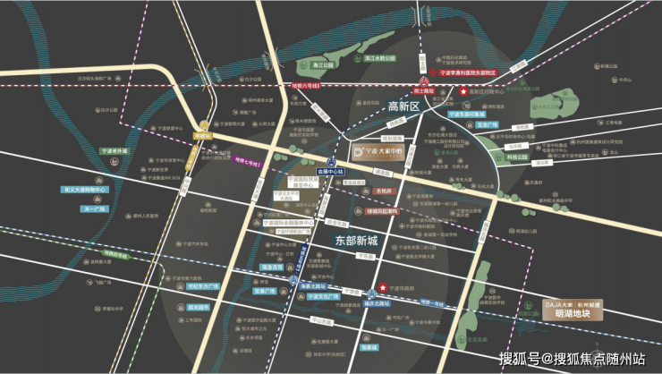 项目占位鄞东双芯板块,紧邻城市核心商圈与产业集群,区域发展潜力充足。交通上近邻地铁 5 号线,规划双地铁格局,周边城市主干道环绕,日常通勤、跨区出行高效便捷。