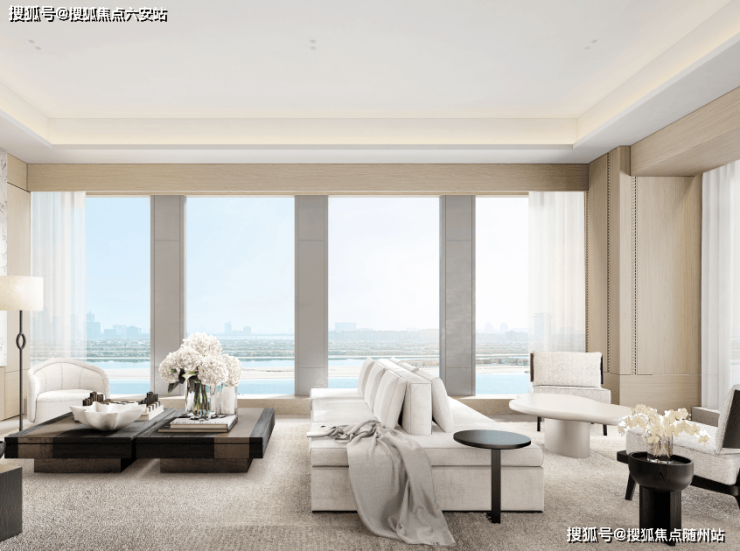 总统式套房:主卧配备独立家政间、衣帽间及干湿分离卫浴,部分户型设2㎡安全屋及私人观景露台。