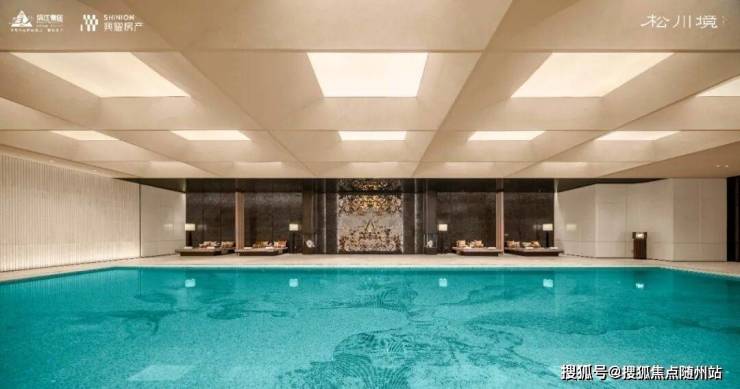 林木掩映的「松涧天光」恒温泳池,约30-32℃四季恒享,纵身跃入约8米x20米的碧波,亦或于池畔躺椅小憩,看天光云影共舞,在自然诗意中躺平。