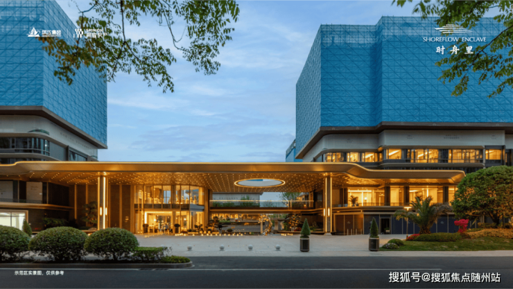 GAD大师张微以“科技+生态”为设计理念,将未来感弧线融入城市肌理:70米宽、9米高的鎏金天幕入口采用偏置大堂设计,顶部圆形镂空让光线穿透,将社区立体花园与城市界面自然衔接,形成“你站在桥上看风景”的互动美学。