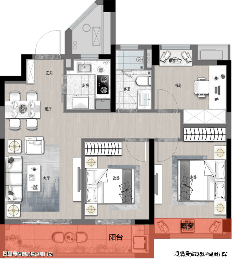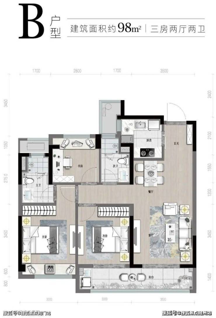 98㎡三房两卫双阳台:总价208.8万起,南向面宽约9.7米,主卧套房+全明双卫,性价比之王!