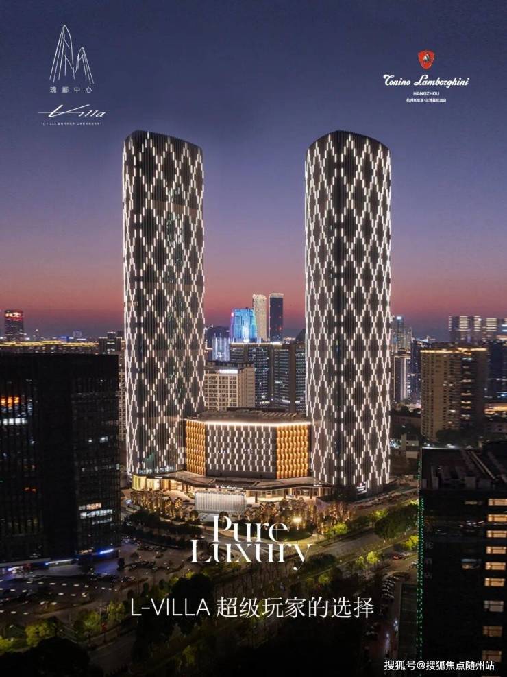 是杭州之门后,奥体落成的海拔第二高双塔(约250米),外号“小杭州之门”。瑰郦中心L-VILLA位于T2塔楼,12层的裙楼就是托尼洛·兰博基尼酒店。