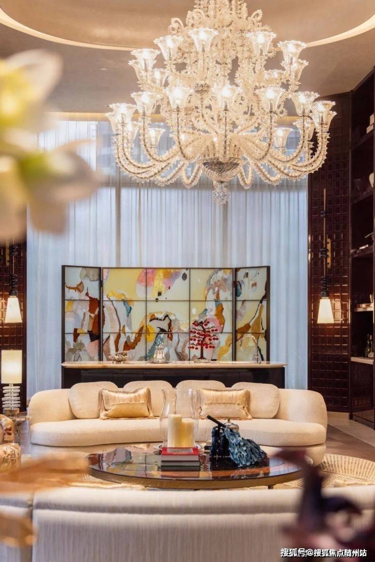 整个示范区里,运用了20余种奢石,如贝金米黄石材、蓝翡翠玉石、亚马逊绿奢石、广汉白石材、黄金丝绸大理石……奢宅的高级感,深入骨髓。