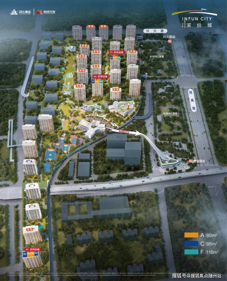 滨杭滨纷城是目前杭州唯一拥有双地铁站的超级大盘,横跨9号线二期在建的康信路站和兴元路站。