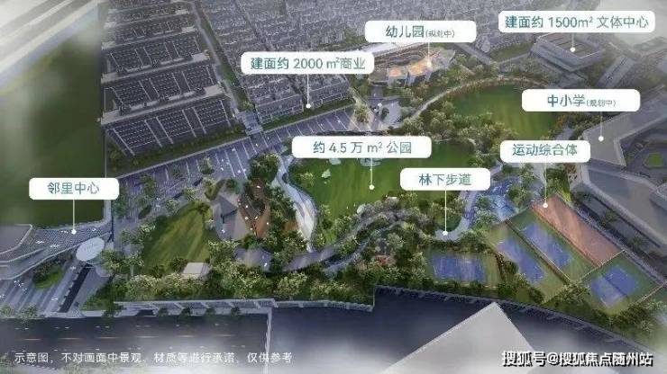 星缦和润住宅楼盘的总建面约48万方,内部包含了4.5万方的公园、九年一贯制学校、幼儿园、文体中心、邻里中心以及约2000方的商业街等多个功能区域。