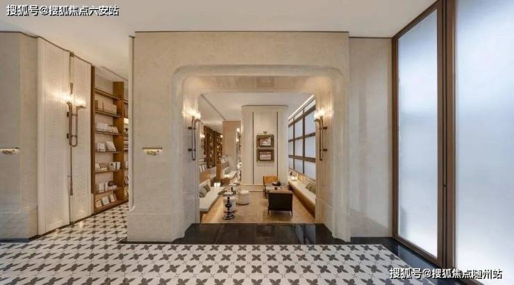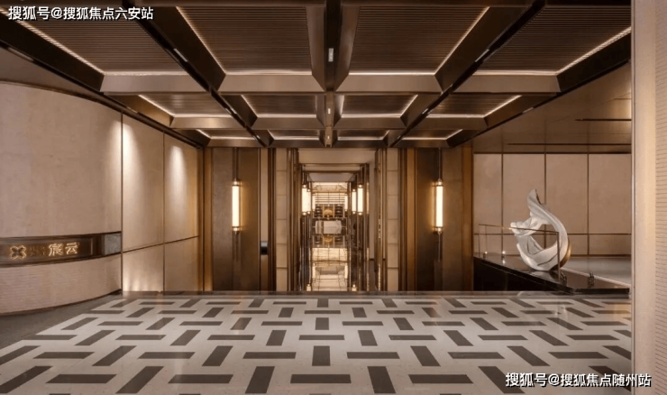 单元门厅选用雪山兰奢石背景墙,地下光厅采用金属岩板与发光云石吊顶,营造酒店式归家感。