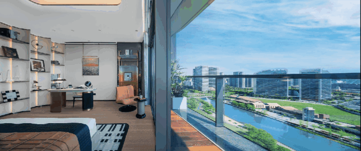 室内装修由梁志天操刀设计,奢雅还彰显在每一处细节里,高定级的12面衣柜,轻轻拉开,就能看到里面设置的化妆台、迷你吧、摇表器区域等,展现了中南对高端生活的尖端认知,并做到精细至每一厘米的用心。中南专利黑科技全落地玻璃电动提升推拉门,价格不低于一辆奥迪车,更有全屋语音智能化设计,让科技赋能生活。