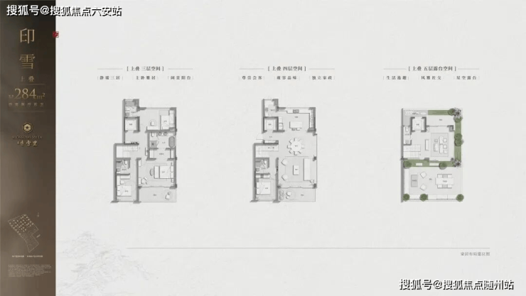 合院:面积约296-339㎡,地上三层设计,双主卧套房、L型景观面、顶层阳光房与私家电梯入户,主卧独占整层,地下室可拓展为私人艺术馆。